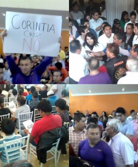 Por otro lado, en el salón Ghal de la misma ciudad, se efectuaba la asamblea para designar a Corintia Cruz Oregón como la abanderada por el distrito de Xalapa Urbano, sin embargo, aquí la inconformidad fue mayor.
