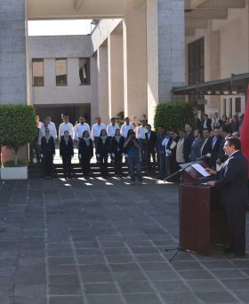 Tras rendir los honores a la bandera y con la participación de las diputadas Luisa Ángela Soto Maldonado , Janeth García Cruz y Mariana Dunyaska García Rojas , así como los legisladores Juan Manuel del Castillo González y José Kirsch Sánchez , el diputado Callejas Roldán refirió que actualmente para los partidos y actores políticos la de hoy es una realidad compleja, que exige la renovación no solo del discurso, "vivimos en una era en la que pocos creen ya, sobre todos los jóvenes", argumentó.