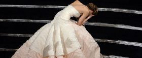 Jennifer Lawrence tropezó por Oscar.