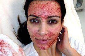 La propia Kim publicó en internet fotografías de su rostro luego de someterse a un procedimiento llamado "vampiro" o "facial de sangre" y consiste en extraer sangre del brazo, mover las plaquetas y volver a introducir la sangre mediante diminutas agujas.