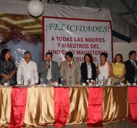 La Dirigencia Estatal del Sindicato Magisterial Veracruzano , que Dirige el Lic. Luis Alonso Polo Villalobos , en su asamblea anual celebraron el Dia de las Madres y el Dia del Maestro, con un desayuno, rifa de regalos para todos los agremiados de ese Sindicato, están presentes representantes del Gobernador del Estado, del Secretario de Educación y otras personalidades gubernamentales, así mismo hicieron entrega de reconocimientos a cada una de las delegaciones sindicales en sus diferentes modalidades educativas, además la dirigencia estuvo muy alegre y ante todo atendiendo a cada una de las personas que aprovecharon la ocasión para pedir algunas gestiones ante dicha dirigencia para que se las puedan solucionar, que son algunas situaciones laborales y de sus planteles educativos…