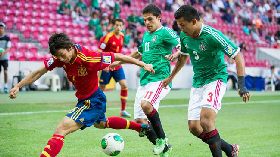 España comenzó a tejer su juego de toques por toda la cancha y, pese a que acaparaba la posesión del balón, el Tri creaba opciones peligrosas con el contragolpe, que los dejó cerca de marcar el segundo.