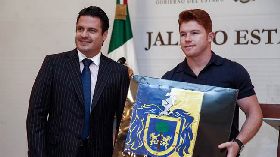 "Recibimos a Saúl ‘Canelo´ Álvarez, uno de nuestros jóvenes atletas, orgullo de Jalisco, a quien le deseamos el mejor de los éxitos, es un baluarte para nuestros jóvenes. El gobierno está comprometido en apoyar a los atletas, a gente con dedicación, esfuerzo, que a muy corta edad ha demostrado que cuando se tiene un sueño, se trabaja duro para un firme compromiso, con uno mismo, con su estado, su patria, puede traer grandes orgullos", señala.