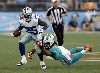 CANTON, Estados Unidos, Ago. 3, 2013.- La devolución de intercepción de 75 yardas del apoyador novato, Devonte Holloman, fue clave en la victoria de los Dallas Cowboys, 24-20, sobre los Miami Dolphins en el Partido del Salón de la Fama de este domingo por la noche que dio inicio a la pretemporada de la NFL.