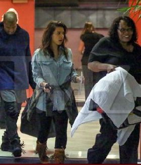 La socialité es vista muy sonriente cuando salía de una clínica, acompañada de sus dos amores: Kanye y North West