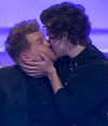 El beso se produjo cuando Harry y sus compañeros de banda 1D, Niall Horan y Louis Tomlinson aparecieron en el exitoso programa británico de televisión A League of Their Own, donde James es el conductor.