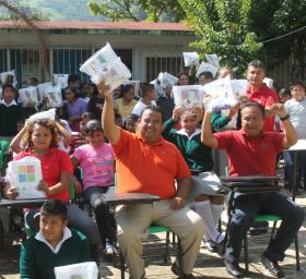 Ixtaczoquitlán, Ver.- Cientos de alumnos de al menos tres planteles educativos de igual número de comunidades fueron beneficiados por el Ayuntamiento, mediante la entrega de mobiliario escolar y útiles por parte del presidente municipal Francisco Amador Damián .