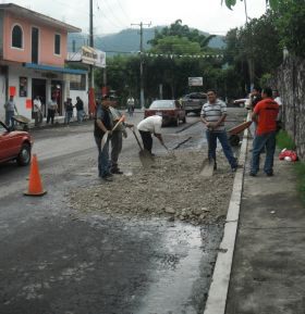 Arreglan carretera trabajadores del volante.