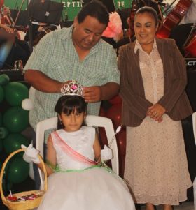 Ixtaczoquitlán, Ver.- Con el propósito de recaudar fondos que permitan la realización de las fiestas patronales en honor a San Sebastián, a celebrarse el 20 de enero del 2014, la mayordomía de Cuautlapan, presentó a la "reina infantil por un día", Jacqueline Parra Pérez , quien recibió el cetro y corona de manos del alcalde Francisco Amador Damián .