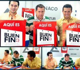 Orizaba Veracruz.-La delegación Orizaba de la Cámara Nacional de Comercio, Servicios y Turismo(CANACO SERVYTUR) Anunció este martes el programa "EL BUEN FIN" 2013, que se llevará al cabo del 15 al 18 de noviembre del presente año. Durante la presentación estuvieron presentes Mario Ríos Alvarado , Presidente de CANACO Orizaba, Enrique Guillomen Maldonado , Consejero Nacional de CONCANACO y Jorge Peláez Muñoz , Vicepresidente de Comunicación y Difusión de CANACO Orizaba.