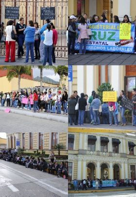 "El anuncio hecho por el gobierno del estado a través de la Secretaría de Educación acerca de que habrá sanciones y hasta rescisión de contratos para quienes no acudamos a trabajar, es una forma de presión por parte de las autoridades estatales para que regresemos a las aulas, sin embargo, queremos hacerle notar al Gobernador Javier Duarte y a su gabinete que no hay marcha atrás en esta lucha, y que lejos de habilitar formas de represión por instrucciones de las instancias federales, se deben abrir al dialogo en busca de soluciones a nuestras demandas", señalaron voceros de este grupo perteneciente a la Coordinadora Nacional de la Educación.