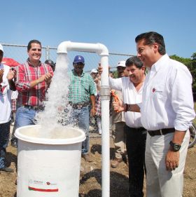 En compañía del alcalde Lucio Castillo Bravo , señaló que el agua en los hogares de cada familia, junto a buenos sistemas de salud y educación, son los principales esfuerzos que está haciendo el Gobierno del Estado, a través del programa Adelante".