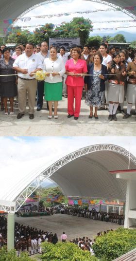 Ixtaczoquitlán, Ver.- Un total de 915 alumnos tanto de la Escuela Secundaria Técnica número 74, como de la Universidad Popular Autónoma de Veracruz (UPAV), fueron beneficiados este lunes, con la entrega de un domo acanalado de alta calidad, de manos del alcalde Francisco Amador Damián , acompañado de su esposa Sandra Lilia Mendoza y su comuna.