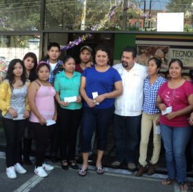 Destaco el esfuerzo de las tres estudiantes que recibieron su beca por parte del CONACYT de un monto de 15 mil pesos por pago acumulado de agosto a diciembre, más otros dos mil pesos para gastos de material escolar, así como del servicio médico por parte del Issste.
