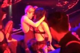De acuerdo con dailymail.co.uk, durante el show Miley convenció a las bailarinas de bajar al escenario y además de compartir movimientos sensuales, besó a una de ellas.