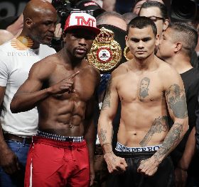 Floyd Mayweather y Marcos Maidana vencen al primer rival, la báscula