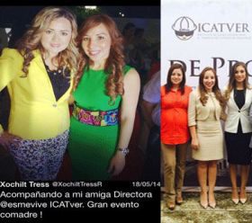 En entregas anteriores, informamos de la sustracción de expedientes por parte del Director General de ICATVER, Víctor Arcos Roldán y gracias a esto, el despido fulminante de Itzel Natalia Lendechy como titular de ICATVER Xalapa… El mismo día, fue designada Lourdes Karina Moreno Cruz , quien sin experiencia y nulas habilidades para el puesto, fue incrustada para asumir la titularidad en esa dependencia perteneciente a la Secretaría del Trabajo y Productividad… Y ustedes, inteligentes lectores, se preguntarán qué relación tiene esto, con Xóchitl Tress… Lourdes Karina Moreno es amiga de Esmeralda Muñoz Márquez, titular de ICATVER Veracruz y ésta última es también, amiga y comadre entrañable de Xóchitl Tress Rodríguez , en el Puerto de Veracruz… Dicta en el Twitter de Xóchitl: " @XochitlTressR 18/05/14 Acompañando a mi amiga Directora @esmevive ICATver. Gran Evento comadre!"…