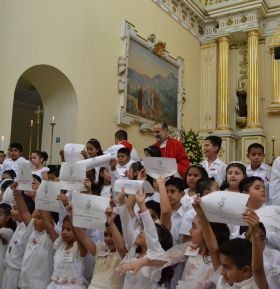 Orizaba Veracruz.-Como parte de las actividades propias de la festividad patronal de Nuestra Señora del Carmen, este fin de semana tras dos años de intensa preparación, 50 infantes recibieron el sacramento de la Eucaristía y 60 más el de la Confirmación, dio a conocer el Rector de dicho Santuario Mariano, presbítero Marcos Palacios Cárdenas .