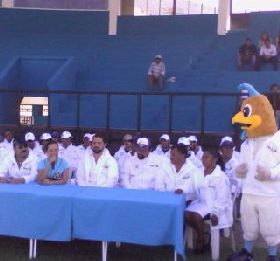 Camerino Z. Mendoza Ver.-En las propias instalaciones del estadio "Esfuerzo Obrero" ayer domingo fue presentada la nueva directiva del equipo de béisbol "Gallos de Santa Rosa" que participará en la próxima mini-temporada invernal veracruzana, cuyo patronato deportivo, cultural y social "Santa Rosa" es encabezado honoríficamente por la diputada local Jacqueline García Hernández .