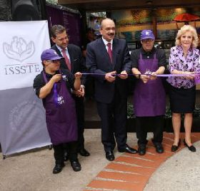 El Director General del ISSSTE, Sebastián Lerdo de Tejada, en compañía de la presidenta de la Fundación "John Langdon Down", Sylvia García-Escamilla, inauguró una cafetería "Tres 21", en el Centro Médico Nacional "20 de Noviembre", con el propósito de apoyar la labor altruista en favor de las personas que presentan esta alteración genética.
