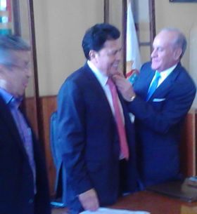 Orizaba.- Ricardo Aldana Prieto , diputado federal y tesorero del Sindicato Nacional Petrolero , recibió un reconocimiento departe del cabildo orizabeño, por su aportación en gestión de recursos para su "patria chica", como así la llamó el alcalde Juan Manuel Diez .