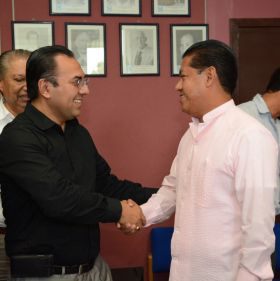 Mediante el diálogo, la negociación y con respeto a la autonomía municipal, a fin de que no se vulnere el Estado de Derecho, los diputados Carlos Gabriel Fuentes Urrutia y Eduardo Sánchez Macías , presidente y vocal de la Comisión Permanente de Gobernación del Congreso del estado -respectivamente-, se reunieron con el presidente municipal de Misantla, Efrén Meza Ruiz , quien ofreció su versión sobre el conflicto con los locatarios del mercado "Antonio M. Quirasco".
