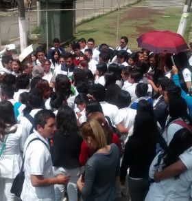 Río Blanco.- Más de 400 estudiantes universitarios, permanecen en las afueras de la facultad de odontología desde el pasado lunes, ante la exigencia de establecer un diálogo con la rectora de la máxima casa de estudios de la Universidad Veracruzana, Ofelia Ladrón de Guevara, quien se reúsa a atenderlos.