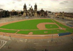Un grupo cercano de 50 personas descargaron varios rollos de pasto artificial y comenzaron con los trabajos. Los organizadores esperan terminar de colocar el campo sintético y las carpas para invitados al medio día de este jueves, para después dar paso a las gradas.