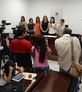 También llamó a los periodistas para que en los medios de comunicación no se denigre la imagen de las mujeres que ocupan cargos públicos, porque regularmente se les cuestiona por su apariencia personal, pero no se habla de su trayectoria: "Debe cambiar esa percepción y garantizar que las mujeres que llegan a un puesto lo hagan por méritos propios".