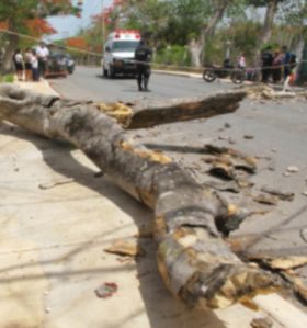 "Lo más importante aquí es que no hubo personas heridas, y estamos por determinar si es que un cuarto árbol que se ubica a un costado de la escuela -Rafael Delgado- se retire debido al riesgo que representa, toma do en cuenta que está escuela primaria alberga a un promedio de 500 niños que el próximo lunes regresan a clases".