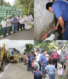 Ixtaczoquitlán, Ver.- El Presidente Municipal Aquileo Herrera Munguía, en compañía del honorable cuerpo de regidores, dio el banderazo del programa Muro Firme que gestionó ante la Secretaria de Desarrollo Social (Sedesol) para beneficio de habitantes de la comunidad de Zapoapan.