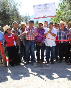 El alcalde Huerta Rodríguez en compañía de los ediles Alejandro Reyes Cruz , Alfonso Cruz Ríos , así como del agente municipal de la congregación de Necoxtla Cornelio Miguel Victoria , también inauguraron la primera etapa de concreto hidráulico del camino rural Xocotitla-Tlamanca.