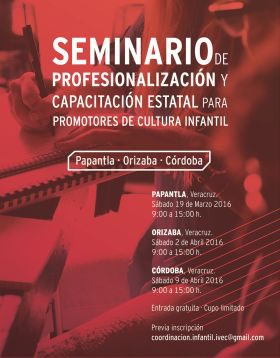 El Instituto Veracruzano de la Cultura (IVEC) llevará a cabo la tercera emisión del Seminario de Profesionalización y Capacitación Estatal para Promotores de Cultura Infantil, a cargo del gestor y productor artístico Carlos Cruz Florencia , en espacios de Papantla, Orizaba y Córdoba.