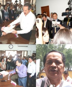 El Dirigente Estatal del Partido Acción Nacional , Jesús Mancha Alarcón , acompañado del Dirigente Estatal del PRD en Veracruz, hizo entrega de la documentación del Lic. Miguel Ángel Yunes Linares , como aspirante a la Candidatura a la Gubernatura del Estado de Veracruz, por la Coalición "Unidos para Rescatar a Veracruz", en donde al hacer uso de la Palabra tachó al organismo público de estar bajo el yugo del Gobierno del Estado, les dijo de frente tanto a Alejandro Bonilla, presidente y Alfredo Roa Morales , secretario, que los veracruzanos no están seguros de la certeza y transparencia de su trabajo al frente del ente electoral, estamos a mil 656 horas de que se produzca un cambio histórico en Veracruz, que vibra hoy con la voluntad del cambio, "vibran todos los veracruzanos en rechazo a un gobierno corrupto", acusó además que tanto Javier Duarte como su secretario de Trabajo, Gabriel Deantes, operan el OPLE, "no puede ser que todos sepamos que Gabriel Deantes sugiere a funcionarios, sugiere a secretarios ejecutivos, llama a consejeros y consejeros para tratar de comprarlos y presionarlos", expresó en las instalaciones del OPLE, así mismo señalo que no se cuenta con la certeza porque a pesar de que la SCJN dijo que no era la facultad del Congreso del Estado nombrar al secretario ejecutivo, los consejeros designaron a la misma persona que había designado la legislatura y fue necesario acudir a la autoridad electoral para que ese nombramiento se fuera abajo y volvieron a incurrir en lo mismo, además expuso "Hoy tenemos a un presidente de este organismo que es un presidente que ha trabajado para el gobierno corrupto de Javier Duarte y un secretario ejecutivo que viene de la campaña del PRI, como todos los sabemos", "Ustedes tienen espacio para jugar en un espacio político y ese espacio es el PRI, y por eso los exhorto a que no simulen imparcialidad, a que ustedes se sumen a la campaña del PRI, que es de donde provienen de donde se originan, no vengan aquí a engañar a los veracruzanos y decir que este proceso será imparcial", con respecto al representante del PAN en ese Organismo les indico ustedes no son garantía de imparcialidad, les reiteró, tras mencionar directamente a Bonilla Bonilla que es muy delicado que haya amenazado a Lauro López Zumaya de proceder penalmente en su contra, "Le quiero decir que le pedimos que presente la denuncia, sabemos que va a proceder porque usted y el Fiscal tienen al mismo jefe, pero también sabemos, que Lauro va a permanecer en prisión todo el proceso electoral él será un preso político de conciencia porque luchó por la democracia, porque lo único que hizo al entrar a esta oficina fue descubrir cómo ustedes, al amparo de la noche estaban violentando la norma; Lauro López estará en prisión no tengamos precaución porque el pueblo lo liberará en su momento", por lo que exhorto a los funcionarios electorales que presenten su renuncia y que sean conscientes del daño que le han hecho a Veracruz y que permitan que el pueblo se exprese con libertad y que no permitan que el OPLE lo opere Javier Duarte, "ni otro pillo que es Gabriel Deantes", "No vamos a permitir que le roben el triunfo al pueblo de Veracruz, las elecciones del 5 de junio, éste no puede ser un organismo manejado por el PRI", posteriormente a un costado de la mesa de su registro dio una pequeña conferencia en donde mostro fotografías de donde está el funcionario electoral en un acto del PRI…