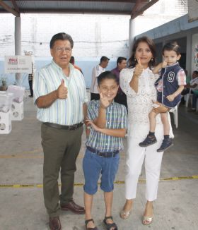 Vota alcalde Aquileo Herrera Munguía acompañado de su familia.