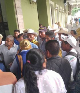Zongolica, Veracruz. - Desesperados por el nulo apoyo por parte del gobierno del estado, agentes y sub agentes municipales acompañados por 200 personas viajaron a la capital del estado para protestar frente a las oficinas de la Secretaria de Finanzas y Planeación (SEFIPLAN) para después trasladarse al frente de Palacio de Gobierno.
