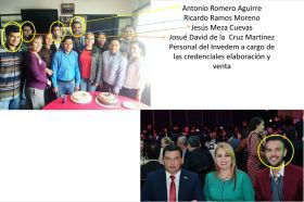 Así mismo, con el RFC ROA851201RC5, Antonio Romero Aguirre, quien es su familiar directo y también sobrino, fue dado de alta desde marzo del 2011 al 30 de noviembre del 2016, quien ocupo diversos puestos dentro del INVEDEM, este último, como Jefe del Departamento de Estudios e Información Municipal, quien ha sido el operador político para las reuniones con Alcaldes, en cada campaña a Diputado Local, Federal, Presidencias Municipales y Gubernatura, a favor del Partido Revolucionario Institucional, así como el responsable del negocio particular de Credencialización a las autoridades y servidores públicos municipales desde el año 2012, cobrando de forma directa las credenciales y sin que se ingresara el recurso o se reportara a SEFIPLAN, Contraloría General o a la propia oficina administrativa del Instituto, en la que Antonio Romero Aguirre apertura una cuenta en la institución Banamex, para el manejo personal de los recursos, expidiendo recibos con logotipos del INVEDEM de forma provisional a cada empleado municipal, que tramitó su credencial con un costo aproximado de $120 pesos cada una. Personal del INVEDEM. adscritos al departamento de Antonio Romero, acompañados por él, acudieron durante 2014, 2015 y 2016 a municipios, por citar algunos como Martínez de la Torre, Tonayán, Cosamaloapan, Xalapa, Jilotepec, a credencializar a todo el personal del Municipio, sin que reportaran los ingresos por dicha actividad. Esto se denunció con las ligas para su consulta: http://www.alcalorpolitico.com/informacion/genaro-mejia-niega-haberse-basificado-en-secretaria-de-gobierno-218945.html#.WH5xt1PhDIU, así como http://diarioelmartinense.com.mx/estado/misantla/31380-personal-del-ayuntamiento-recibe-credencial-del-invedem.html y http://municipiossur.com/index.php/secciones/estado/3161-impulsa-segob-profesionalizacion-municipal...
