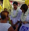 Ixtaczoquitlán.- Desde muy temprano, la entrada a Tuxpanguillo se vistió de azul y amarillo, decenas de personas se congregaron en el lugar para recibir con porras y cohetes al candidato a presidente municipal por la coalición PAN-PRD, "Contigo el cambio sigue", Miguel Ángel Castelán Crivelli, quien se incorporó a la campaña ganadora.