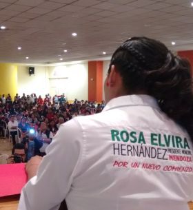 "A unos días de la elección puedo decir de forma fuerte y clara que. ¡Ya Gané! Si en esta contienda me declaro ganadora, lo digo con fuerza y seguridad, ya gané el poder haber tocado a tu puerta y que me abrieras, ya gané el que me escucharas, que supieras y conocieras mis propuestas, pero sobretodo haberte escuchado", expresó durante su discurso Rosa Elvira Hernández .