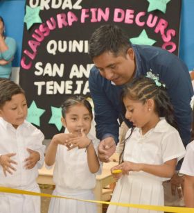 San Andrés Tenejapan .- Refrendando su compromiso con el sector educativo, el Alcalde Raymundo Namictle Juárez , hizo entrega del techado en el Jardín de Niños Gustavo Díaz Ordaz , ubicado en la Comunidad de Quiñiatla, con el cual se estarán beneficiando a más de 30 alumnos que estarán cursando sus estudios de educación inicial durante el próximo ciclo escolar 2017-2018.