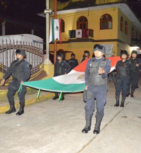 La Escolta de la Policía Municipal, capitaneada por el Primer Comandante Martín Morales Reyes, se encargó de recibir la Bandera de México, para trasladarla hasta el Parque Central y después izar el emblema tricolor a media asta, como un símbolo de luto nacional por los actos valientes de los Niños Héroes.