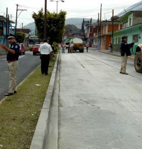 Nogales Veracruz.-Para salvaguardar la integridad física tanto de peatones como de automovilistas, efectivos asignados a la delegación local de tránsito y seguridad vial número 18, realizan tareas de vigilancia sobre el boulevard de Nogales, donde el ayuntamiento ejecuta labores de embellecimiento y mantenimiento.