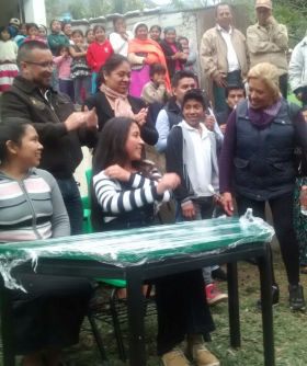 Nogales, Ver.- La Presidenta del DIF, Verónica Gallardo y el alcalde Guillermo Mejía, acompañados de los tres regidores del cabildo, entregaron mobiliario escolar para la telesecundaria "Gabino Barreda" ubicada en la congregación de Campanario.