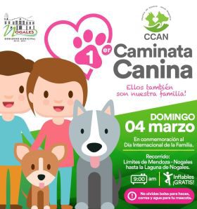 Nogales, Ver.- El Ayuntamiento y el Centro de Control Animal de Nogales (CCAN), invitan a la Primer Caminata Canina porque "ellos también son nuestra familia", en conmemoración al Día de la Familia.