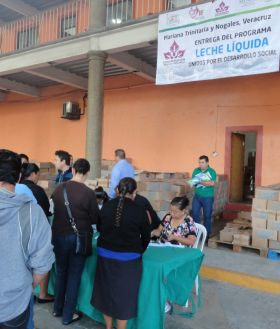 Nogales, Veracruz. - La Congregación María Trinitaria y el Ayuntamiento 2018-2021 continúan acercando leche líquida para población en general y leche en polvo para niños de 6 a 9 meses, sólo con una cuota de recuperación.