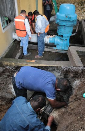 Ixtaczoquitlán, Ver. - La coordinación de Agua Potable de Ixtaczoquitlán trabaja a marchas forzadas en la reparación de una fuga en la tubería de 14 pulgadas que suministra agua a las Unidades de Potrerillo 1,2 y 3; Manzanales y Arboledas; se dio mantenimiento también a la válvula principal.