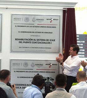 En el evento, el Presidente de la República también develó las placas inaugurales del Puente Vehicular Coatzacoalcos I, del Libramiento Acceso al Puerto de Veracruz, y de la Construcción del Bulevar Boca del Río-Antón Lizardo.