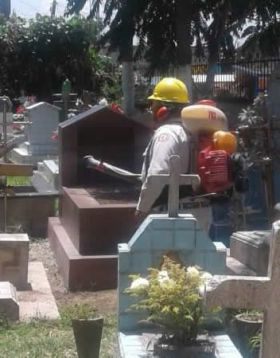 "La fumigación en estos lugares, forma parte de la lucha nacional contra el dengue, zika y chikungunya, y la finalidad es salvaguardar la integridad de las familias que acuden a los panteones asentados en el municipio", indicó Vicente Figueiras.