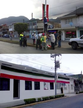 Al iniciar el "mes patrio", de manera inmediata cuadrillas de trabajadores al mando del oficial mayor Oswaldo Marrón Luquez , por instrucciones del presidente municipal Guillermo Mejía Peralta , se avocan a la tarea de colocar de inicio, en uno de los accesos a este municipio, motivos patrios.