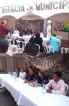 El agente municipal, Julio Manuel Juárez Valente presidió esta rueda de prensa, seguido por varios presidentes de comités ... |